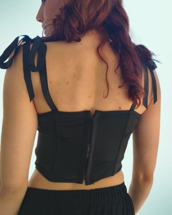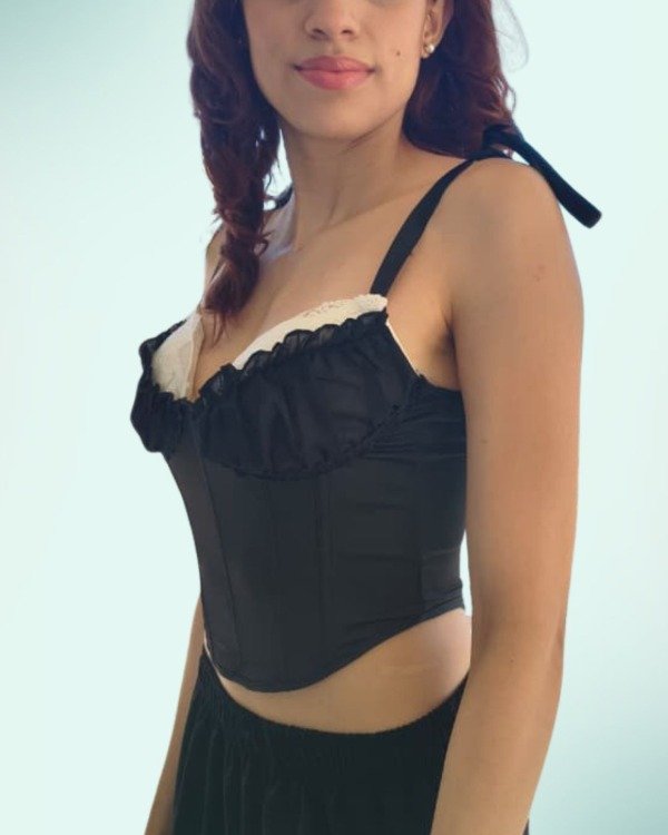 Corset importado confeccionado en poliéster, con estructura firme que modela la cintura y detalle fruncido que realza el busto. En la espalda cuenta con broches, lo que permite un ajuste seguro y cómodo.