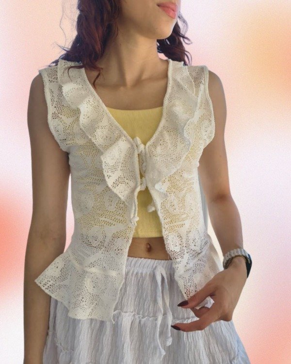Musculosa confeccionada en broderie liviano, fresca y súper delicada.
